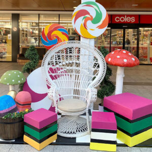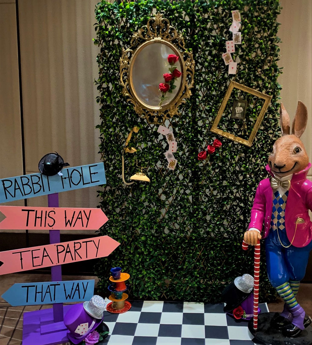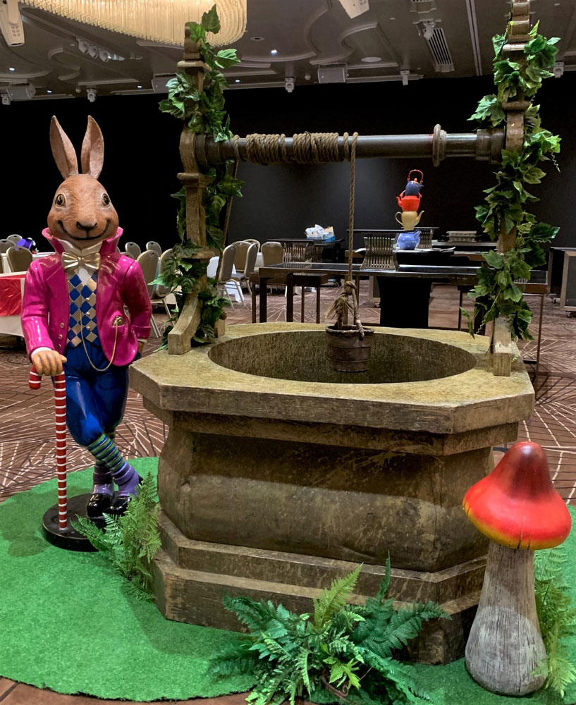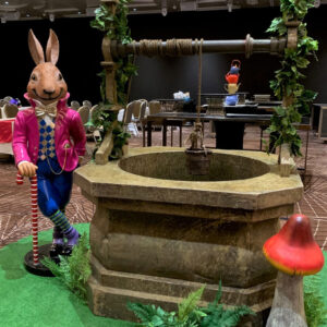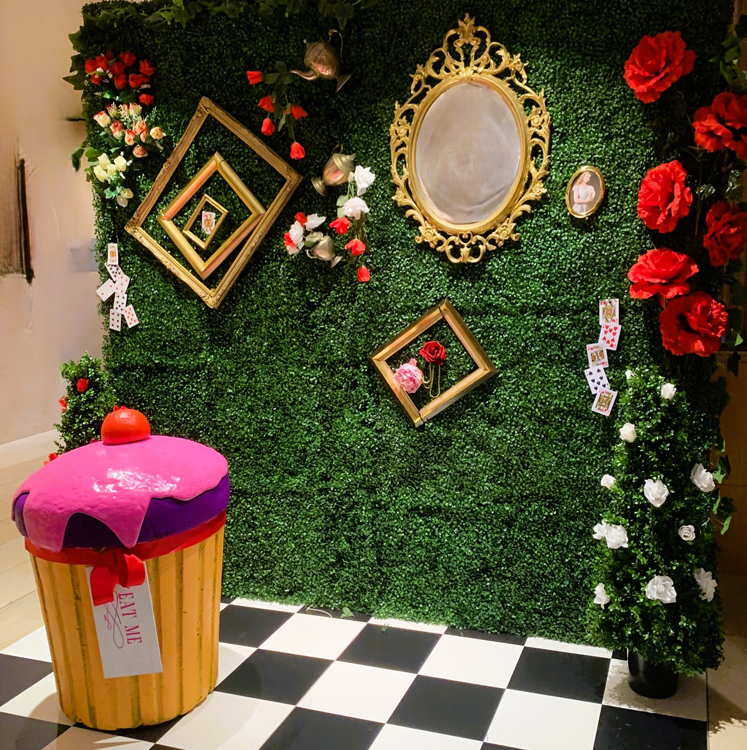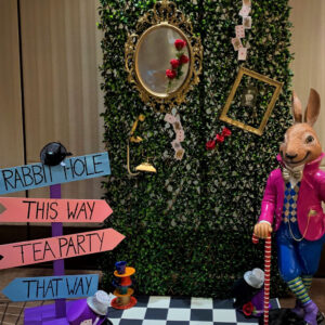 Make your Alice in Wonderland themed event one to remember with our incredible range of Alice In Wonderland props for hire. Review our range below, and customise your hire to suit your event or photo shoot. Throw a coin in the wishing well, share a hookah with a caterpillar or sit on the black & white chequered flooring and stare at the giant flowers on tall stalks overhead, or relish in the vibrant colour of a themed background / insta wall.
