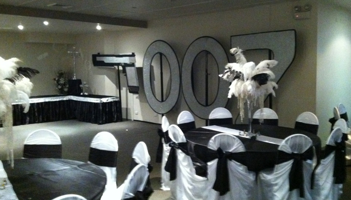 The third, a sophisticated black tie affair with 007 backdrop, giant Martini glasses and stylish Bond silhouettes.