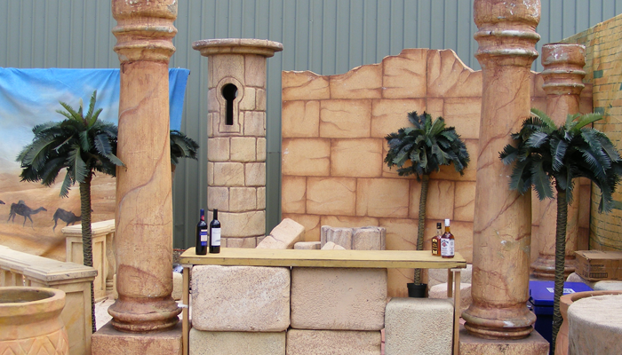 The Sphinx, the Sacred Ibis, mummies and a Sarcophagus begin Ace’s Egyptian prop collection for hire. Desert backdrops and palm trees are perfect with sandstone blocks, towers, turrets and minarets. The Pharaoh’s Palanquin and golden fans adorned with peacock and ostrich feathers are popular, as well as Egyptian artefacts and low furniture to create the essence and opulence of a grand civilisation.