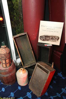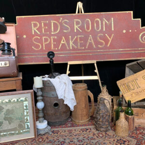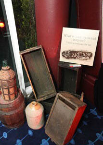 Gramophones, Timber crates, barrels, chesterfield lounges, low trunk tables and leather ottomans set the scene of the festive prohibition pub. A bakelight phone, 20’s cash register, wine casks and soda shakers line the shelves and crates behind the corri bar at your 20’s prohibition themed event.