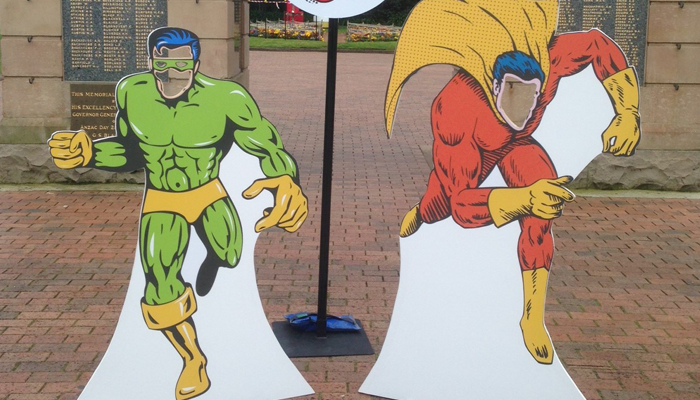 City skylines and Hyperreal cityscapes are where you find our Superheroes at your themed event. 3D Superhero statues make fab themed table centres, while the life-sized superhero photo cutouts are an interactive superhero photo opportunity. Tall Speech bubbles line the venue of your special event or Superhero party, each with a different cartoon expression like “kaboom”, “wham” and “pow”! Dress up as your favourite Superhero and feel completely at home in this Superhero party playground.